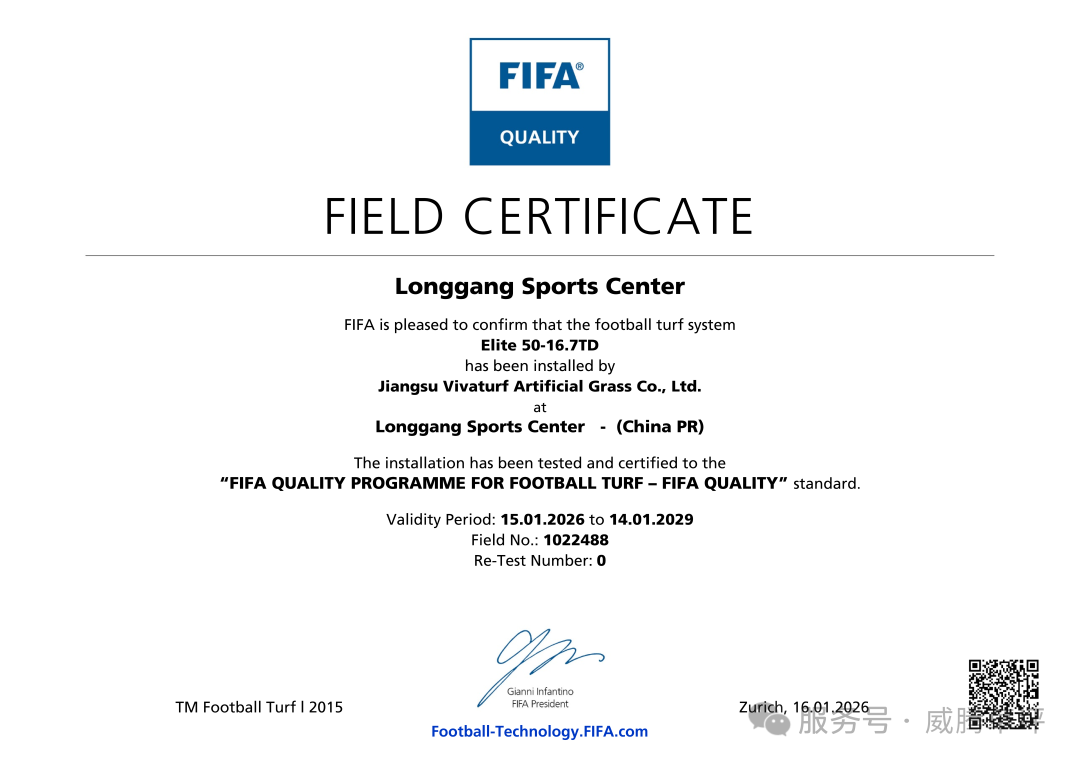 Longgang Sports Center FIFA certified turf FIFAQUALITY FIFA Innovation Programme FIFA innovation program FIFA quality turf